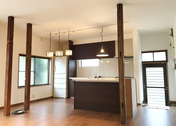 居間、台所、和室の3部屋をワンルームのLDKへ改築しました。